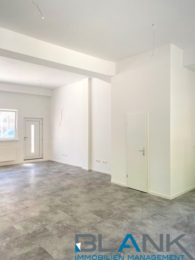 Bereits beim Betreten fällt die großzügige Fensterfront ins Auge, die den Raum mit Tageslicht durchflutet und für eine angenehme Arbeitsstimmung sorgt. Die stilvollen Bodenbeläge in Betonoptik, frisch gestrichene Wände sowie moderne Türen und Installationen schaffen ein professionelles, aber zugleich einladendes Ambiente. Die Einheit verfügt über einen separaten Eingangsbereich, einen großzügigen Büro- oder Verkaufsraum sowie Nebenflächen, die flexibel als Lager, Besprechungsraum oder Teeküche genutzt werden können.