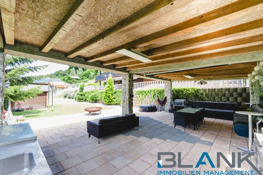 - Sommerbereich: überdachte Sommerküche mit BBQ-Zone, Open-Air-Kino mit Projektor, weitläufiges Grundstück für Spaziergänge, Gartenhaus und großzügig gepflasterter Innenhof