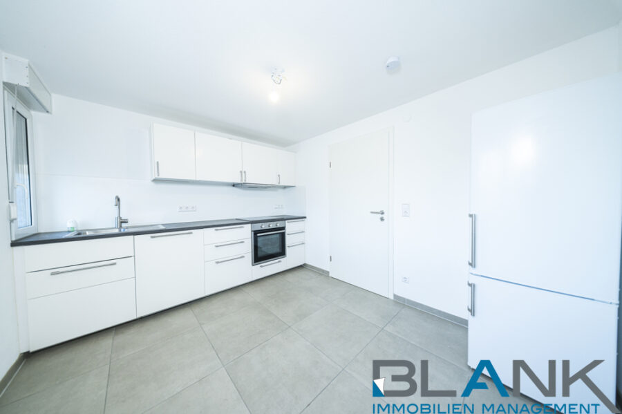Die Küche präsentiert sich als großzügiger und funktionaler Mittelpunkt der Wohnung. Der Boden wurde mit hochwertigen Fliesen ausgestattet, was nicht nur optisch überzeugt, sondern auch besonders pflegeleicht und langlebig ist. Die neue Einbauküche in Hochglanz-Weiß setzt einen modernen Akzent und fügt sich harmonisch in das Raumkonzept ein. Dank der großzügigen Fläche gibt es ausreichend Platz für eine gemütliche Essecke, die das Kochen und Genießen an einem Ort vereint.